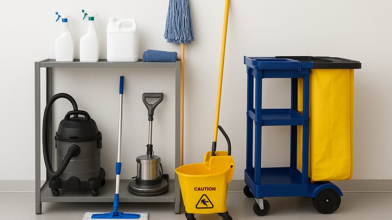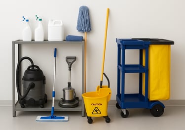 Layanan penyediaan berbagai alat dan perlengkapan kebersihan untuk mendukung kegiatan cleaning service agar efisien dan higienis.